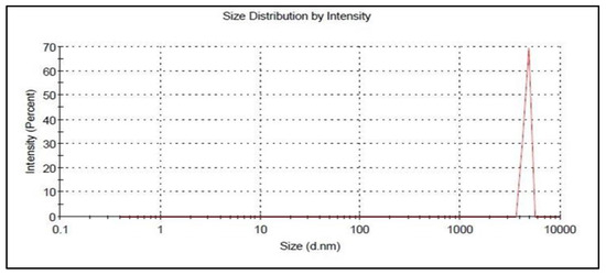 All prepared formulations were evaluated for the particle size analysis by dynamic light scattering technique. The particle size results were found in the range from 3.4 ± 0.2 μm to 32.4 ± 0.5 μm, see Table 2.