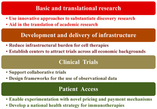 - The, L.; Capra, E.; Amin, P.; Alford, J.; Thompson, D.; Davies, N.; Griffiths, G. Realizing the Promise of Immunotherapy: A Global Plan for Action; World Innovation Summit for Health: Doha, Qatar, 2020; ISBN 978-1-913991-05-0. [Google Scholar]