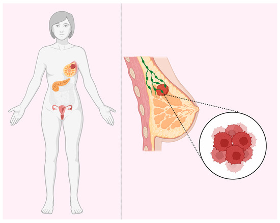 (7) The breast and ovary respond to estrogen, perhaps simply more sensitively than most aforementioned tissues. Some estrogen byproducts can bind to DNA, potentially acting as tissue-specific carcinogens. This phenomenon, termed “remote carcinogenesis”, could be intensified by a BRCA mutation, especially if the associated DNA repair pathways are compromised [49]. Therefore, considering non-cell-autonomous mechanisms, it is important to note that intercellular interactions significantly impact both monogenic and polygenic conditions. A key factor influencing tissue-specific functions is the differential responsiveness of various tissues to certain signals. This is often mediated by tissue-specific proteins, which frequently function as receptors. A pertinent example of this phenomenon is observed in the case of BC and OC that arise due to familial mutations in the BRCA1 gene. Both the breast and ovarian tissues prominently express ER, making them responsive to estrogen. Estrogen signaling can provoke DNA double-strand breaks in BC cells, which in turn leads to the formation of pathological topoisomerase II–DNA complexes. In a normal physiological context, where BRCA1 is functional, these complexes are efficiently resolved. However, in cases where BRCA1 functionality is impaired, such as in certain familial cancers, these complexes accumulate [50].