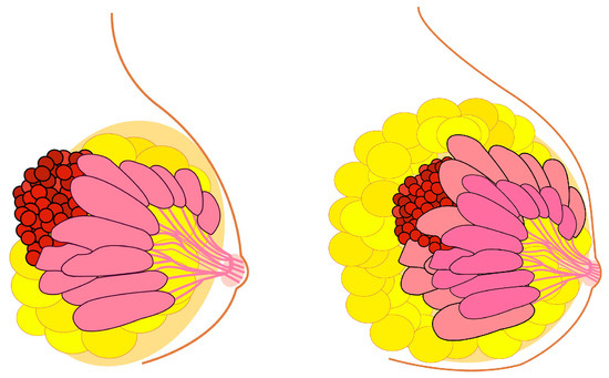 - Jansen, L.A.; Backstein, R.M.; Brown, M.H. Breast Size and Breast Cancer: A Systematic Review. J. Plast. Reconstr. Aesthetic Surg. JPRAS 2014, 67, 1615–1623. [Google Scholar] [CrossRef] [PubMed]