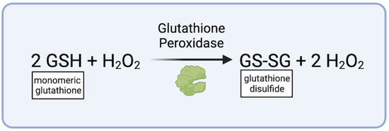 Conversion of hydrogen peroxide via Glutathione Peroxidase (figure generated via biorender.com, accessed 1 November 2023).