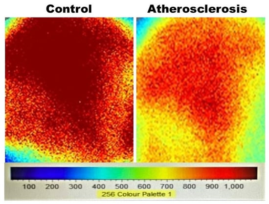 Measurements of bladder microcirculatory blood flow with the Moor FLPI-2 Laser Speckle Contrast Imaging system provided full-field laser recording and detected mean microcirculatory blood flow up to a tissue depth of 3 mm. Using this measurement system, we compared the bladder blood perfusion of rats with iliac artery atherosclerosis versus sham control rats. Statistical analysis of blood flow images suggested significant bladder ischemia in animals with arterial atherosclerosis. Ischemia was characterized by a statistically significant decrease in bladder blood perfusion in animals with atherosclerotic occlusive disease in comparison with sham controls, as shown in Figure 1.