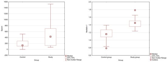 The literature also draws attention to the potential effect of PNX on food Intake [], which requires further research, with particular emphasis on the relationship between the PNX concentrations and body weight/BMI of the examined subjects. It has been described to have anti-inflammatory and cell-protecting effects; affect behavior; and participate in sensory perception, memory processes and energy metabolism. In addition to the central nervous system, PNX is also expected to affect the heart, ovaries, adipose tissue and pancreatic islets. In addition, PNX is believed to play an important role in the female reproductive system, where it increases luteinizing hormone secretion, stimulates oocyte maturation and increases the number of ovulated oocytes []. Thus, it may be necessary to examine whether gender can have an impact on its concentration in serum and take this into account when drawing conclusions from the conducted study, where girls dominate in the study group and boys dominate in the control group.