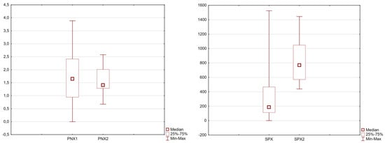 Differences in SPX and PNX concentrations before and after the 6-week pharmacotherapy period (p-value < 0.05 Wilcoxon pair test).