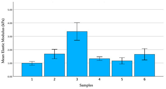 Comparison of the mean values of the EHz in multipoint indentation of the MPD for different samples.