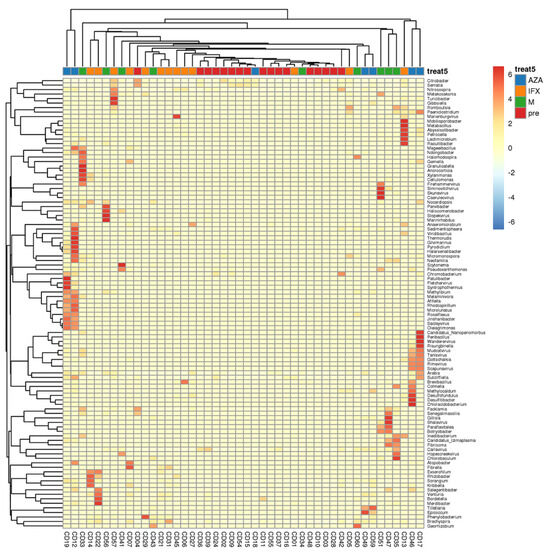 Heatmap of genus level in the fecal microbiota in different treatment groups.