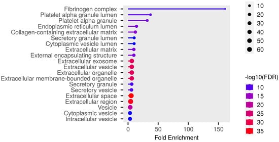 Gene-encoding proteins identified as significantly altered (with FDR correction) in response to CPET were selected for enrichment analysis to link them to underlying molecular pathways and functional categories defined by gene ontology (GO). Enrichment analysis was performed with the 0.80 version of ShinyGO®—a web application http://bioinformatics.sdstate.edu/go/) (accessed on 1 June 2024) [13].