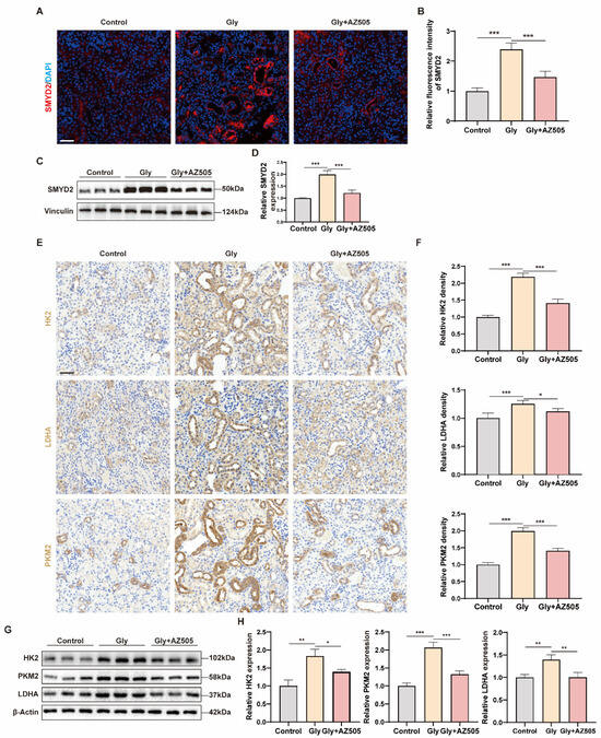 3.3. Inhibition of SMYD2 with AZ505 Reduces Glycolysis in Glyoxylate-Induced Nephrolithiasis Mice