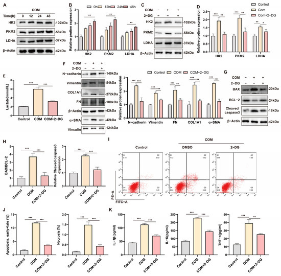 3.5. Glycolysis Promotes COM-Induced Apoptosis, Inflammation, and Epithelial–Mesenchymal Transition in HK-2 Cells