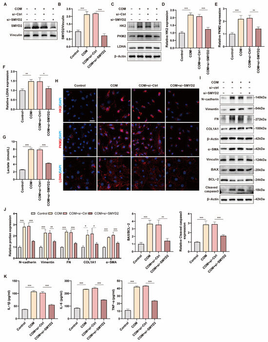 3.6. Silencing SMYD2 Specifically Inhibits Glycolysis, Apoptosis, Inflammation, and EMT in HK-2 Cells