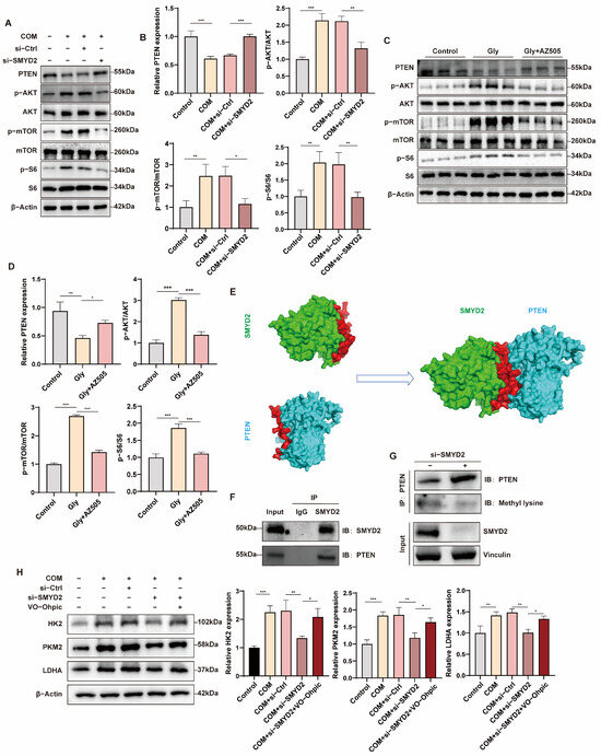 3.7. SMYD2 Methylates PTEN and Inhibits Its Expression, Thereby Promoting Glycolysis by Activating the mTORC1 Pathway in HK-2 Cells