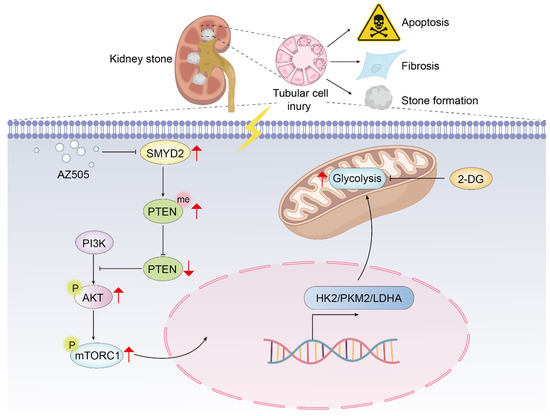 APA StylePan, S., Yuan, T., Xia, Y., Yu, W., Li, H., Rao, T., Ye, Z., Li, L., Zhou, X., & Cheng, F. (2024). SMYD2 Promotes Calcium Oxalate-Induced Glycolysis in Renal Tubular Epithelial Cells via PTEN Methylation. Biomedicines, 12(10), 2279. https://doi.org/10.3390/biomedicines12102279