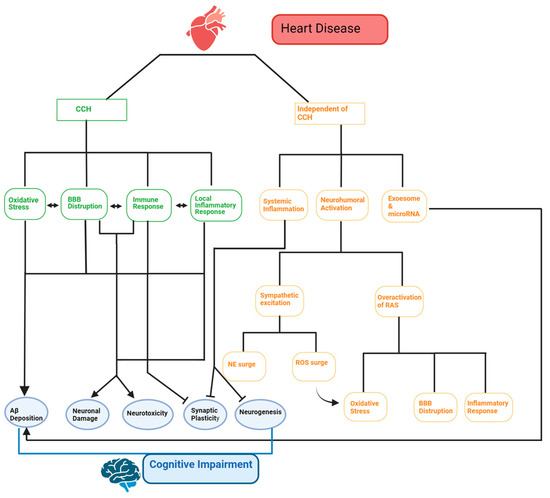 - Saeed, A.; Lopez, O.; Cohen, A.; Reis, S.E. Cardiovascular Disease and Alzheimer’s Disease: The Heart-Brain Axis. J. Am. Heart. Assoc. 2023, 12, e030780. [Google Scholar] [CrossRef] [PubMed]