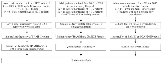 - Weber, F.; Treeck, O.; Mester, P.; Buechler, C. Expression and Function of BMP and Activin Membrane-Bound Inhibitor (BAMBI) in Chronic Liver Diseases and Hepatocellular Carcinoma. Int. J. Mol. Sci. 2023, 24, 3473. [Google Scholar] [CrossRef] [PubMed]