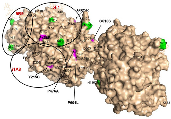 - Danilov, S.M.; Watermeyer, J.M.; Balyasnikova, I.V.; Gordon, K.; Kugaevskaya, E.V.; Elisseeva, Y.E.; Albrecht, R.F.; Sturrock, E.D. Fine epitope mapping of mAb 5F1 reveals anticatalytic activity. Biochemistry 2007, 46, 9019–9031. [Google Scholar] [CrossRef]
