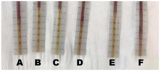 Examples of different patterns of urine chloride markers in the strips ((A)–(F)).