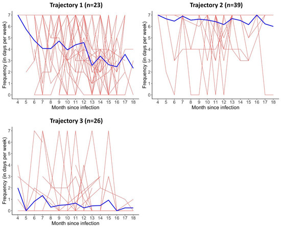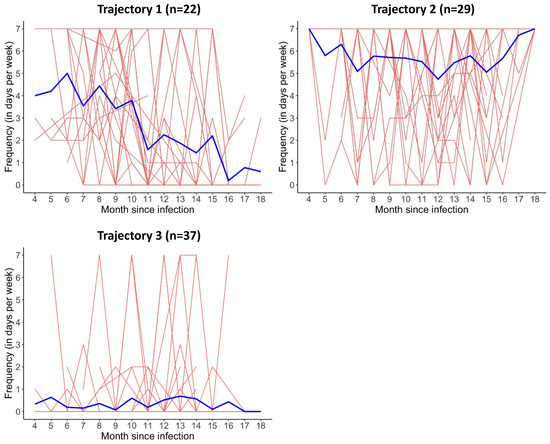 - Servier, C.; Porcher, R.; Pane, I.; Ravaud, P.; Tran, V.T. Trajectories of the evolution of post-COVID-19 condition, up to two years after symptoms onset. Int. J. Infect. Dis. 2023, 133, 67–74. [Google Scholar] [CrossRef] [PubMed]