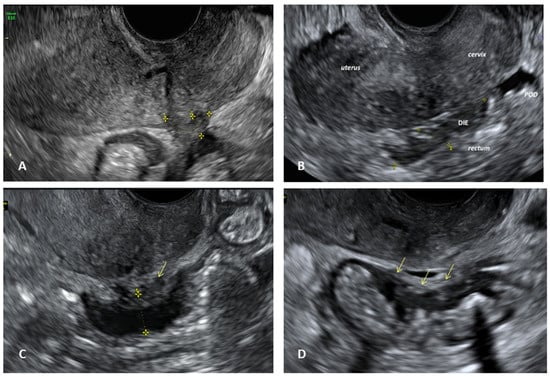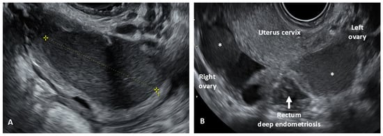 Recently, a consensus was published on the terms, measurements and definitions to be used for describing the different forms of endometriosis during ultrasound examinations [] (Figure 1 and Figure 2).