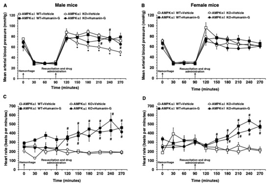 3.1. In Vivo Administration of PEGylated Humanin-G Ameliorates MABP in Male AMPKα1 KO After Hemorrhagic Shock