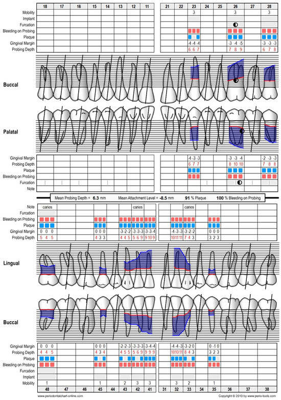 - Tonetti, M.S.; Greenwell, H.; Kornman, K.S. Staging and grading of periodontitis: Framework and proposal of a new classification and case definition. J. Periodontol. 2018, 89 (Suppl. S1), S159–S172. [Google Scholar] [CrossRef] [PubMed]