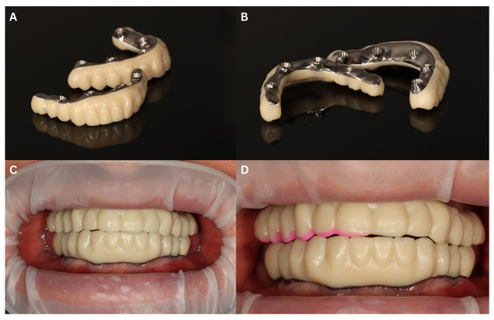 - Nowicki, A.; Osypko, K. Digital Workflow in Full Mouth Rehabilitation with Immediate Loading, Intraoral Welding and 3D-Printed Reconstructions in a Periodontal Patient: A Case Report. Reports 2023, 6, 52. [Google Scholar] [CrossRef]