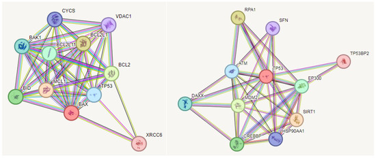 3.4. Protein–Protein Interaction (PPI) (Bax, P53)