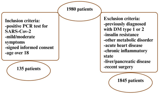 Inclusion/exclusion criteria (created with BioRender.com). Abbreviations: PCR—polymerase chain reaction; SARS-CoV-2—severe acute respiratory syndrome coronavirus 2; DM—diabetes mellitus.