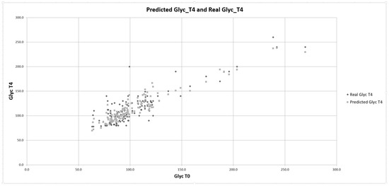 Predicted Glyc-T4 calculated with Equation (3). Glyc-T4—glycemia at the 4-month control; Glyc-T0—initial glycemia.
