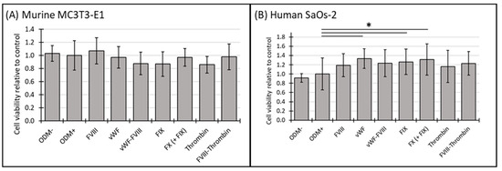 3.1. Cell Viability of Murine MC3T3-E1 and Human SaOs-2 Osteoblasts After Stimulation with Different Coagulation Factors