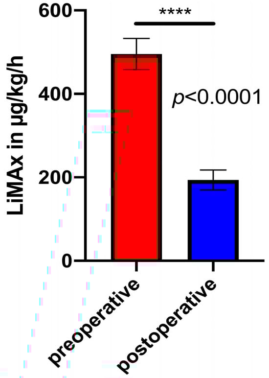 3.3. Pre- and Matched Postoperative LiMAx Values