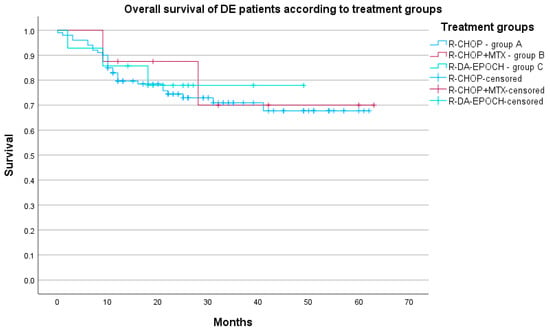 OS of DE DLBCL patients (N = 122) according to three treatment groups (p = 0.939).