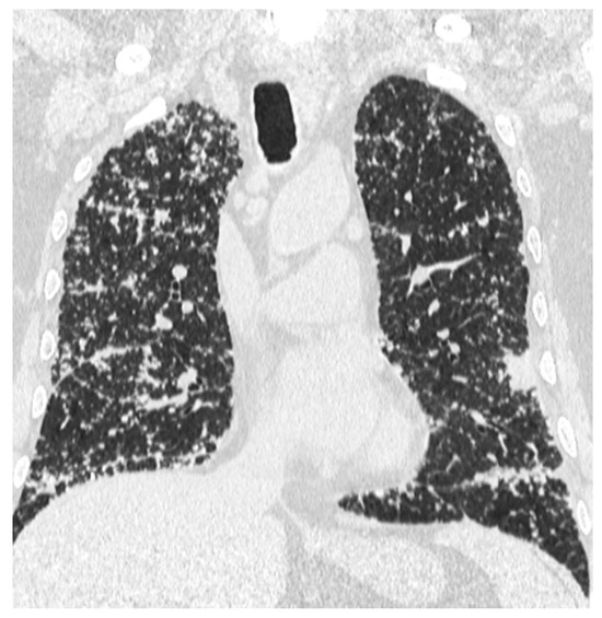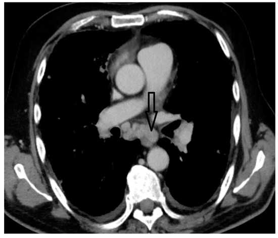 While waiting for the final immuno-histopathological results and for the multidisciplinary team’s decision on the most appropriate treatment for his condition, at his request, the patient was discharged from our hospital and went home. However, in a matter of days, his status significantly deteriorated due to dyspnea, heavy breathing, severe fatigability, and desaturation (home pulse oximetry assessment showed O2 saturation of 80–85%). The patient was subsequently admitted to a Pneumology Department from his native town, where he unfortunately passed away in less than 24 h due to acute hypoxic respiratory failure.