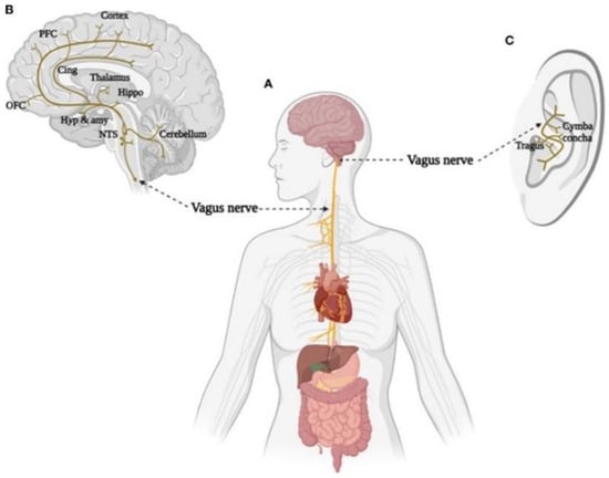 - Butt, M.F.; Albusoda, A.; Farmer, A.D.; Aziz, Q. The anatomical basis for transcutaneous auricular vagus nerve stimulation. J. Anat. 2020, 236, 588–611. [Google Scholar] [CrossRef] [PubMed]