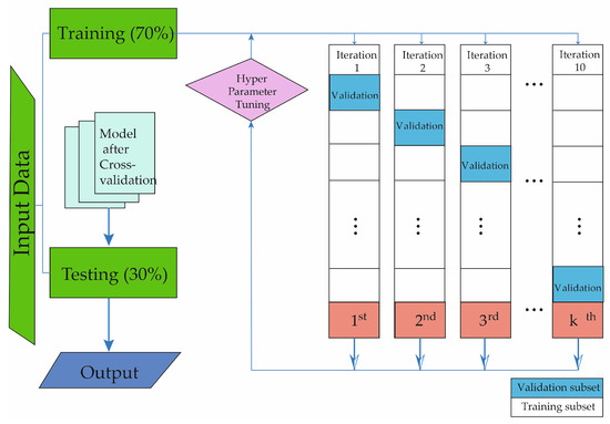 DTs constitute a predictive model organized in tree structures, incorporating decision rules and outcomes. The tree comprises nodes, encompassing the root, internal nodes, and leaf nodes. The depth of the tree influences the model’s generalization, and pruning techniques are employed to avoid overfitting. The construction process involves iteratively selecting features to partition the data, with the objective of maximizing homogeneity [14,26].