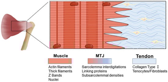 Tong, S.; Sun, Y.; Kuang, B.; Wang, M.; Chen, Z.; Zhang, W.; Chen, J. A Comprehensive Review of Muscle–Tendon Junction: Structure, Function, Injury and Repair. Biomedicines 2024, 12, 423. https://doi.org/10.3390/biomedicines12020423