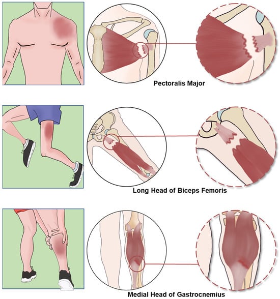 - Noonan, T.J.; Garrett, W.E., Jr. Muscle strain injury: Diagnosis and treatment. J. Am. Acad. Orthop. Surg. 1999, 7, 262–269. [Google Scholar] [CrossRef]