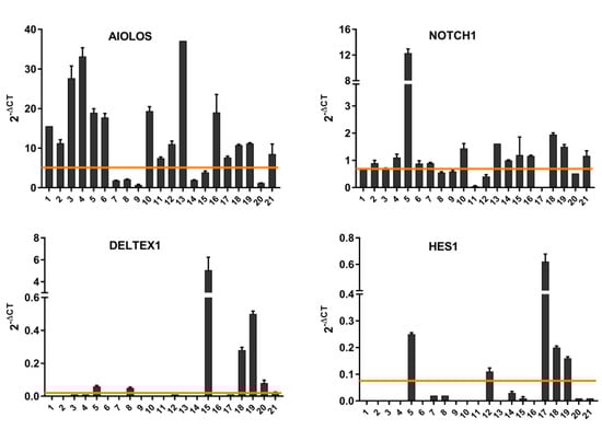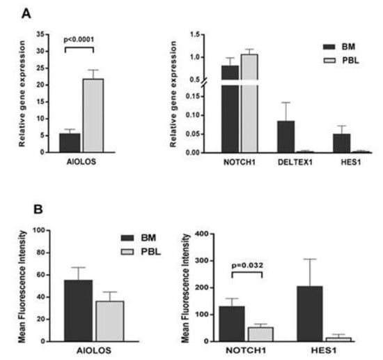 3.4. Notch Pathway Activity in Bone Marrow and Peripheral Blood Samples