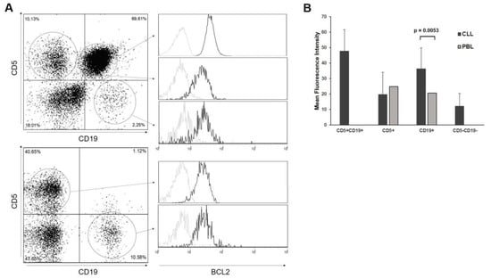 - Menendez, P.; Vargas, A.; Bueno, C.; Barrena, S.; Almeida, J.; De Santiago, M.; López, A.; Roa, S.; San Miguel, J.F.; Orfao, A. Quantitative analysis of bcl-2 expression in normal and leukemic human B-cell differentiation. Leukemia 2004, 18, 491–498. [Google Scholar] [CrossRef] [PubMed]