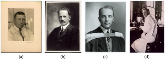 The faces of insulin discovery []. (a) Frederick Banting, the principal investigator; (b) John Macleod, Banting’s supervisor; (c) Charles Best, Banting’s assistant and (d) James Collip, the individual responsible for developing a method to purify a safe and stable insulin extract.