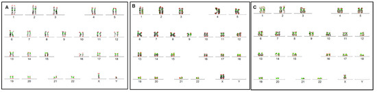 2.3. Culture of Lymphocytes, Preparation of Metaphases, and Analysis of Karyotypes after G-Banding (GTG-Banding)