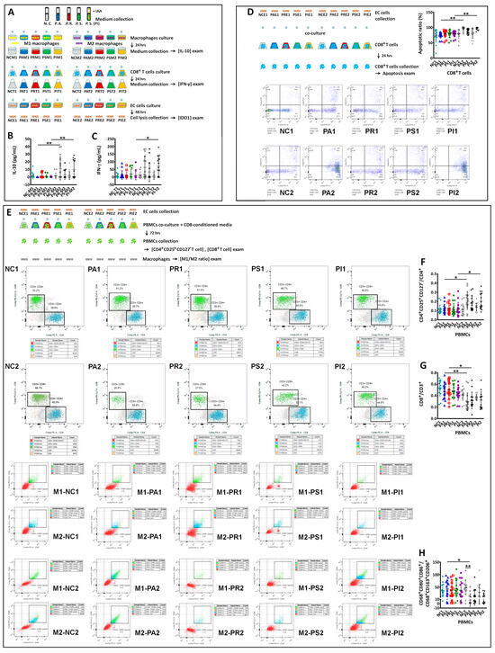 + T cell-conditioned medium with a high IFN-γ concentration induced IDO1 expression in EC cells, unlike the medium with a low IFN-γ concentration. The co-culture of IDO1-expressing EC cells with CD8