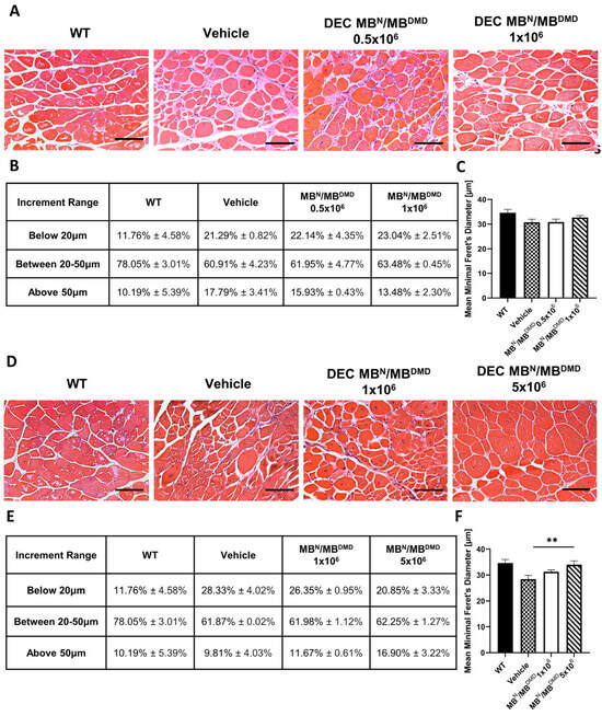 - Cernisova, V.; Lu-Nguyen, N.; Trundle, J.; Herath, S.; Malerba, A.; Popplewell, L. Microdystrophin Gene Addition Significantly Improves Muscle Functionality and Diaphragm Muscle Histopathology in a Fibrotic Mouse Model of Duchenne Muscular Dystrophy. Int. J. Mol. Sci. 2023, 24, 8174. [Google Scholar] [CrossRef]