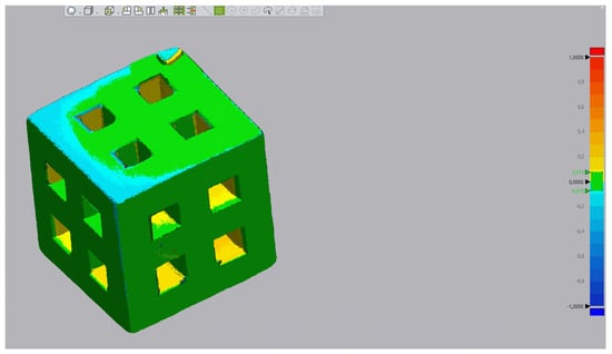 We assessed the accuracy of printing using a micro-computed tomography scanner (micro-CT) (Bruker Skyscan 1172, Billerica, MA, USA) and measured it using Geomagic Control X® (Version 2023.1.0, 3dsystem, Rock Hill, SC, USA). The dimensions of the edges were measured using the average dimensions between all the points of a face and their orthogonal antagonists on the opposite face.