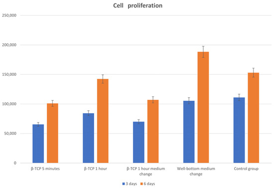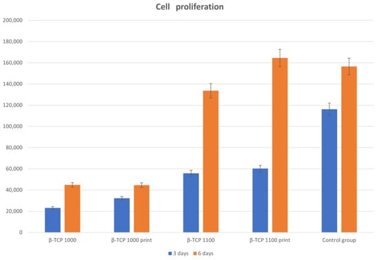 We therefore cultured MC3T3-E1 cells on β-TCP matrices shaped by our printing technique and sintered at 1050 °C. The cell culture and vitality evaluation protocols were otherwise identical to the previous biocompatibility test.