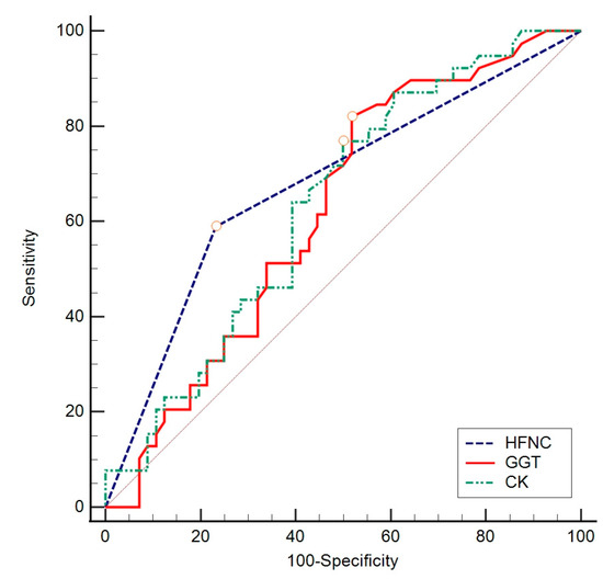 | CK (U/L) | 0.635 | 0.530–0.731 | 76.9 | 50.0 | >76 | 0.27 | 0.020 |