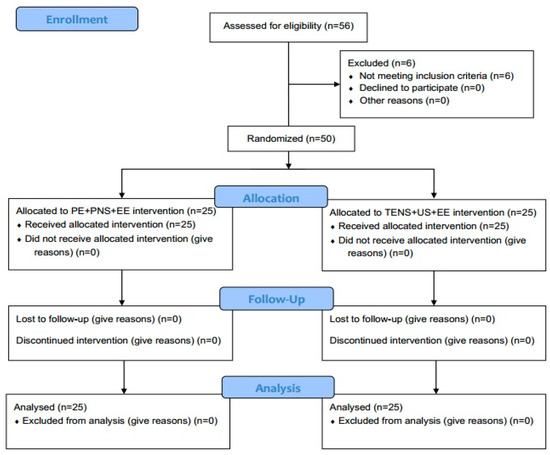 Two intervention groups were established, one with invasive physiotherapy treatment (PE+PNS) and the other with conventional electrotherapy treatment (TENS+US). Patients in both groups completed an EE program.