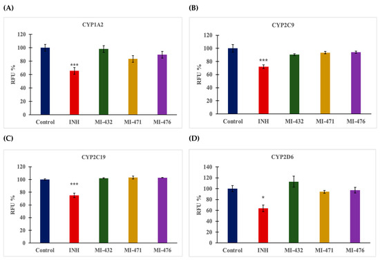 3.2. Influence on Human CYP3A4, 1A2, 2D6, 2C9, and 2C19 Activities