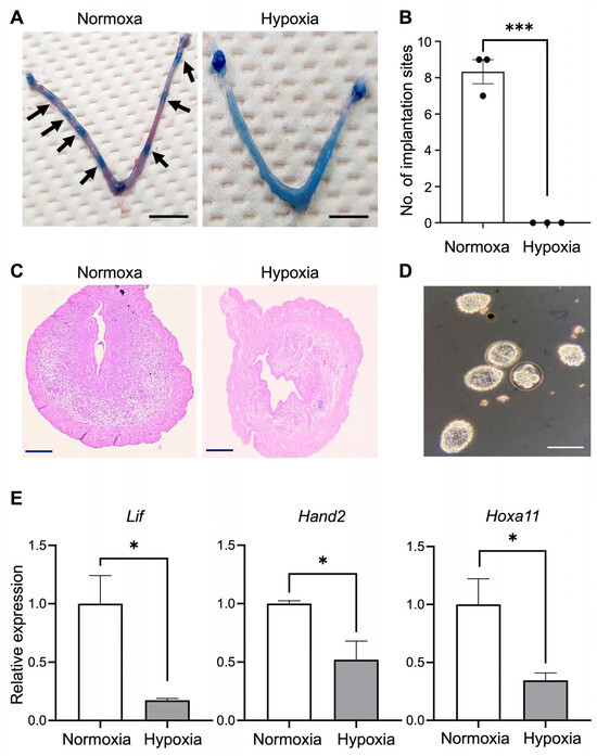 Ammar, A.Y.; Minisy, F.M.; Shawki, H.H.; Mansour, M.; Hemeda, S.A.; El Nahas, A.F.; Sherif, A.H.; Oishi, H. Exposure to a Low-Oxygen Environment Causes Implantation Failure and Transcriptomic Shifts in Mouse Uteruses and Ovaries. Biomedicines 2024, 12, 1016. https://doi.org/10.3390/biomedicines12051016
