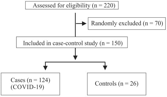 Blood samples of 194 patients were collected from patients aged 18 years or older between 16 April 2020 and 12 January 2024 at the University Hospital of Regensburg. SARS-CoV-2 infection was confirmed by polymerase chain reaction. All patients were hospitalized for COVID-19 disease. For the current analysis, 124 samples were randomly selected (Figure 1).