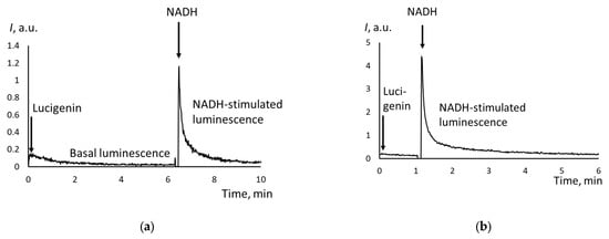 To assess the activity of CYB5R and CYPOR, a protocol was developed based on lucigenin-enhanced chemiluminescence of tissue stimulated by NADH or NADPH, respectively. Chemiluminograms were recorded on a 12-cuvette Lum-1200 chemiluminometer with Power Graph 3.0 software (DISoft, Moscow, Russia). NADH- and NADPH-dependent chemiluminescence in triplicates was recorded simultaneously for each sample, which ensured high reproducibility and comparability of chemiluminograms.